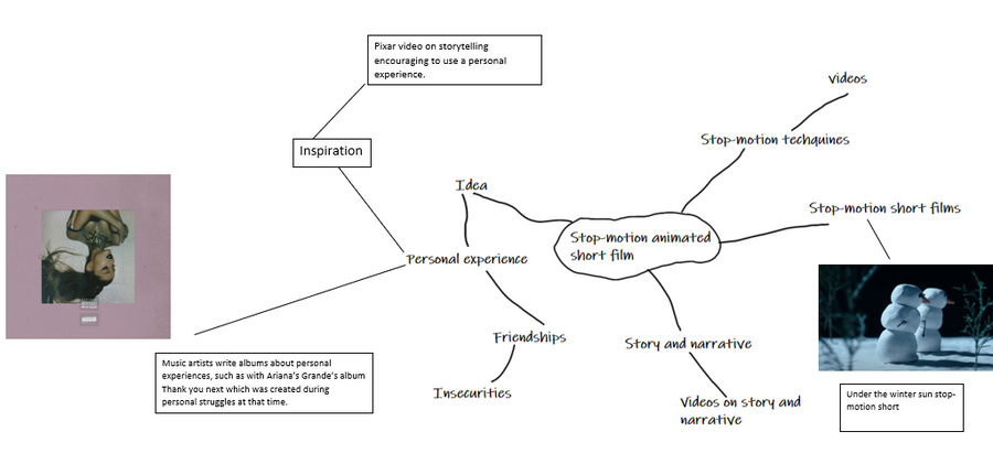 After analysing and reviewing the peer feedback I decided to research more into story and narrative. Though first we created a mind-map on ideas and from this know what we need to research next before beginning pre-production, nevertheless I will continue further researching narrative and story I am also going to look into stop-motion animation short films and techniques.